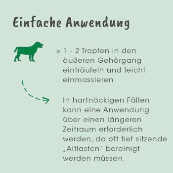 Ohrenpflege eignet sich für die gründliche, schonende Reinigung und wohltuende Pflege der Ohren (Gehörgang und Ohrmuschel), auch bei einem Milbenbefall.