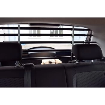 Die meisten Hundeschutzgitter sind auf spezielle Automodelle zugeschnitten und oft ist es eine langwierige Sache sie zu montieren oder bei Bedarf wieder zu entfernen. Beim Trenngitter „Walky Barrier“ hingegen gehen Vielseitigkeit, Benutzerfreundlichkeit und Stabilität Hand in Hand. Das durchdachte Design ermöglicht es Ihnen, dieses Schutzgitter in fast jedem Auto zu installieren (mindestens 28 cm Platz bis von der Kopfstütze bis zur Decke, kein Volvo!). Ein Teleskopsystem sorgt dafür, dass die Breite jeder einzelnen Strebe des Gitters nach Bedarf angepasst werden kann. Einstellungen zwischen 82 cm und 141 cm sind möglich. Auch die Höhe des Gitters kann auf diese Weise angepasst werden. So ist es möglich eine Höhe zwischen 28 cm und 36 cm einzustellen. Das Hundegitter wird an den Stangen der Kopfstützen befestigt und kann sowohl an den Vorder- als auch an den Rücksitzen befestigt werden. Dabei spielt der Abstand zwischen den Kopfstützen keine Rolle. Das Kofferraumgitter kann sogar an einer einzigen Kopfstütze befestigt werden. Diese Technik garantiert eine hervorragende Stabilität der hochwertigen Metallkonstruktion, die auch bei Vibrationen während der Fahrt keine Geräusche verursacht. Wenn Ihnen das Schutzgitter einmal im Weg ist, kann es ganz einfach heruntergeklappt werden.