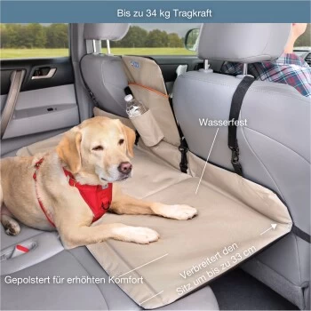 Die Rücksitz-Brücke tut, was ihr Name verspricht: Sie überbrückt die Lücke zwischen Rückbank und Vordersitzen. Das bedeutet, der Abstand zwischen Vordersitz und Rückbankwird auf magische Weise in mehr Platz verwandelt, in dem der Hund seine Pfoten ausstrecken kann. Wird dazu noch die Klapp-Trennwand in der Mitte aufgestellt, wird er sicher auf der Rückbank gehalten.
