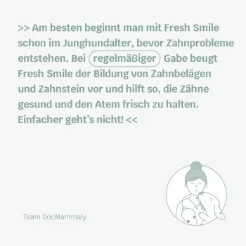 FRESH SMILE beugt bei regelmäßiger Gabe Zahnbelägen und Zahnstein vor.