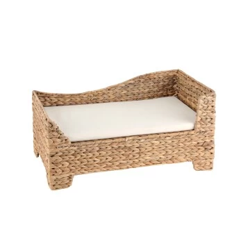 Das gemütliche Bett aus handgeflochtener Wasserhyazinthe mit weichem Kissen verspricht süße Träume, denn das natürliche Material ist schön weich und anschmiegsam.
